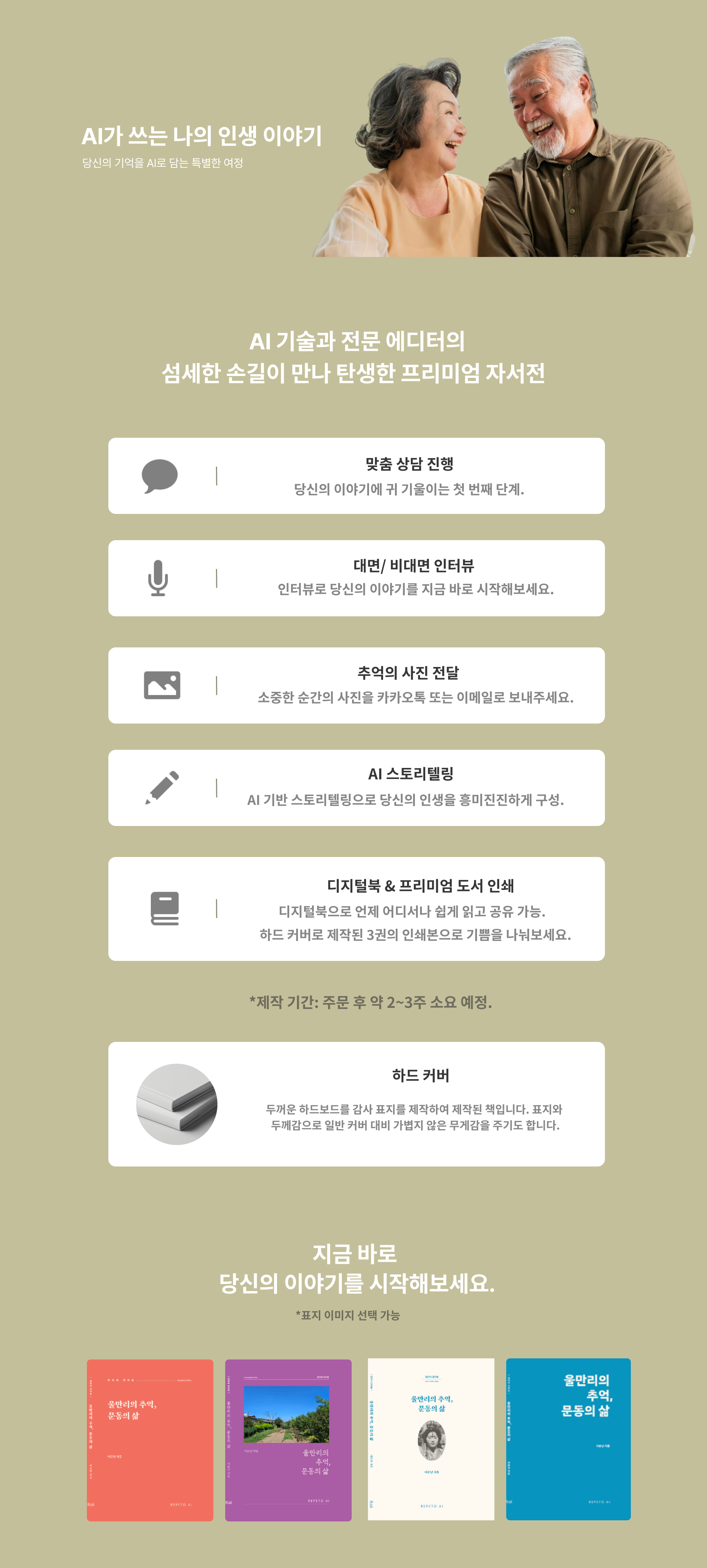- 인터뷰 진행 이후, 책 인쇄 전 : 결제 취소가 불가하고, 결제하신 금액의 50%만 환불이 가능합니다.