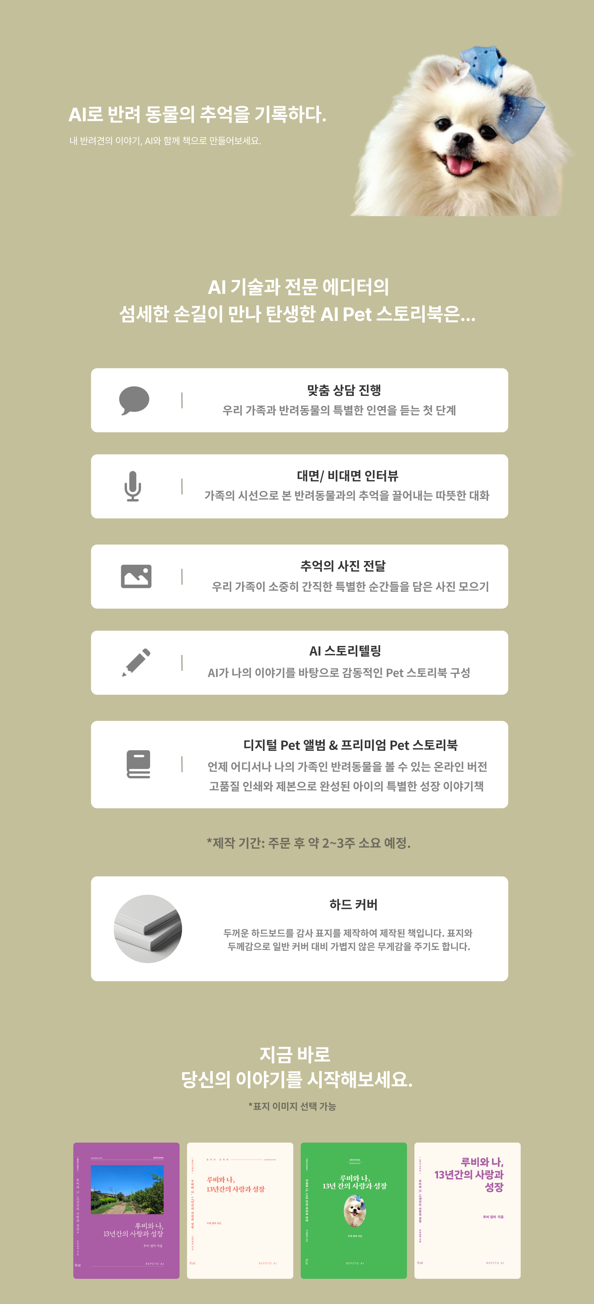 당신과 반려동물의 특별한 이야기를 AI 기술로 책에 담아냅니다.